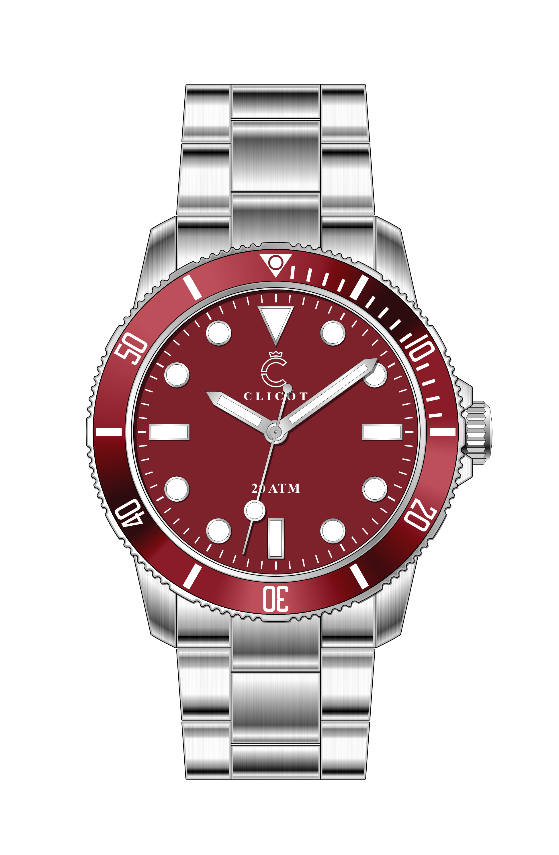 Crafted from brushed stainless steel, this 42 mm masterpiece features a striking deep crimson dial and bezel, symbolizing strength, determination, and unstoppable drive. Luminous hands and markers ensure perfect readability, while the clean, classic silhouette transitions effortlessly from casual days to formal nights.