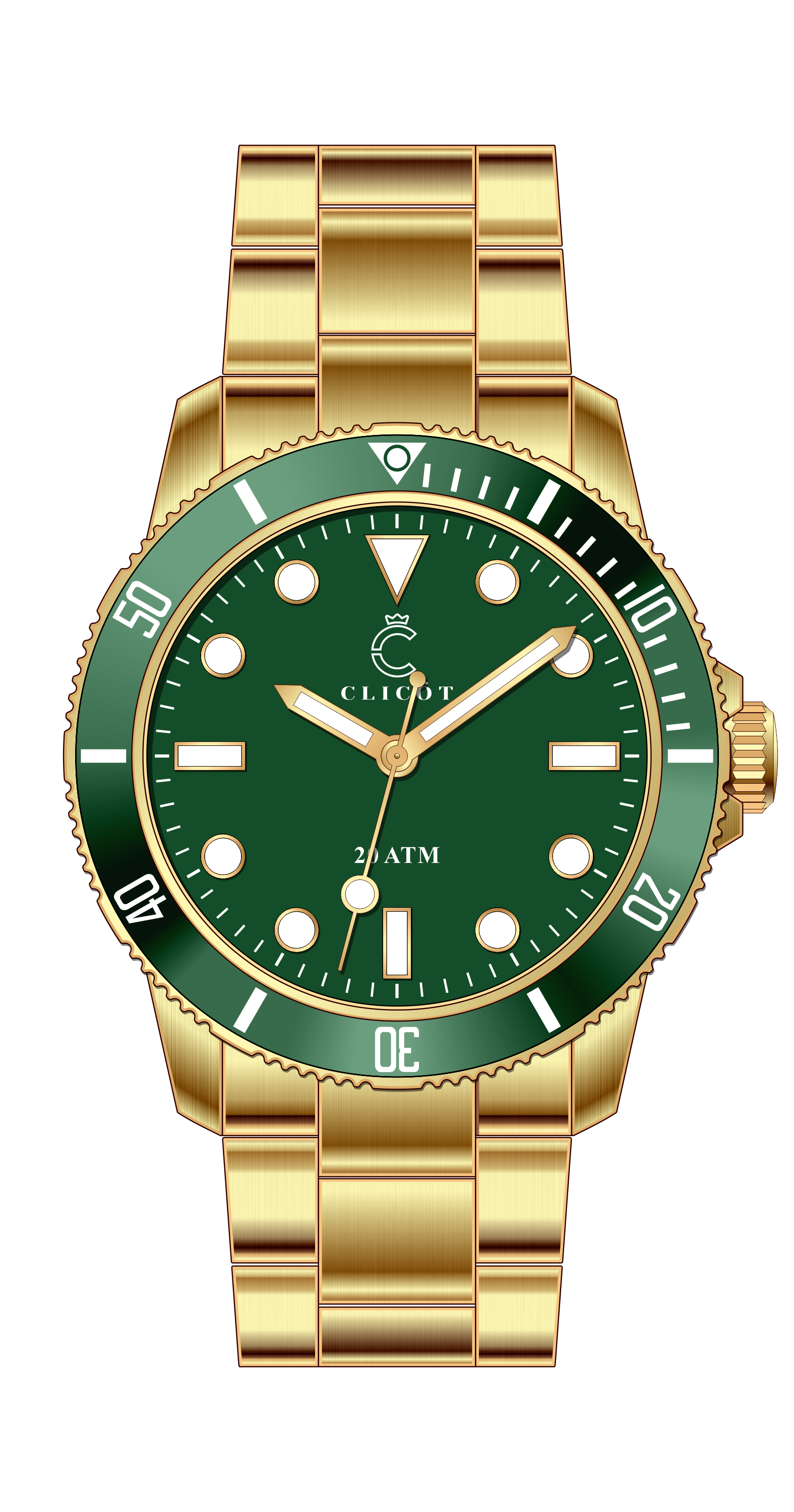 Fabriqué en acier inoxydable brossé plaqué en or éclatant, son cadran et lunette verts — un vert profond et luxueux — capturent l'essence de la transformation et des nouveaux départs. Les marqueurs et aiguilles lumineux garantissent une visibilité parfaite dans n'importe quelle lumière, tandis que les finitions polies et brossées reflètent un sens raffiné de puissance et de sophistication.